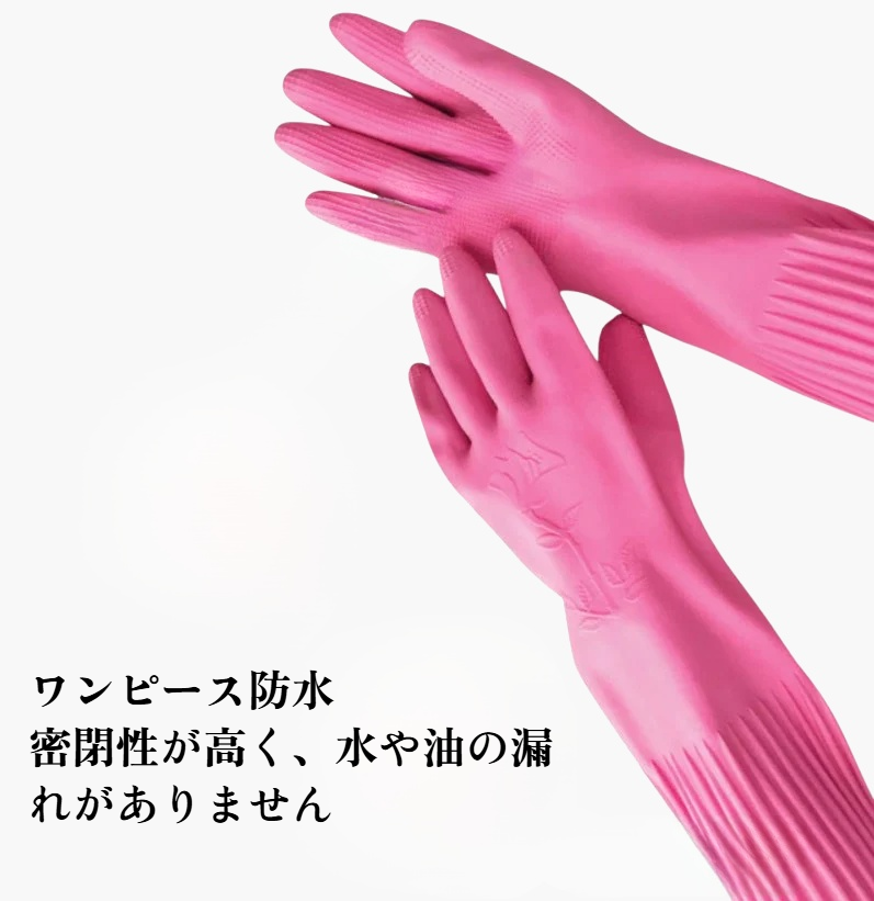 キッチン用ラテックス手袋は耐久性と防水性に優れ、繰り返し使用可能。手にフィットし、細かな作業も快適に行える設計。